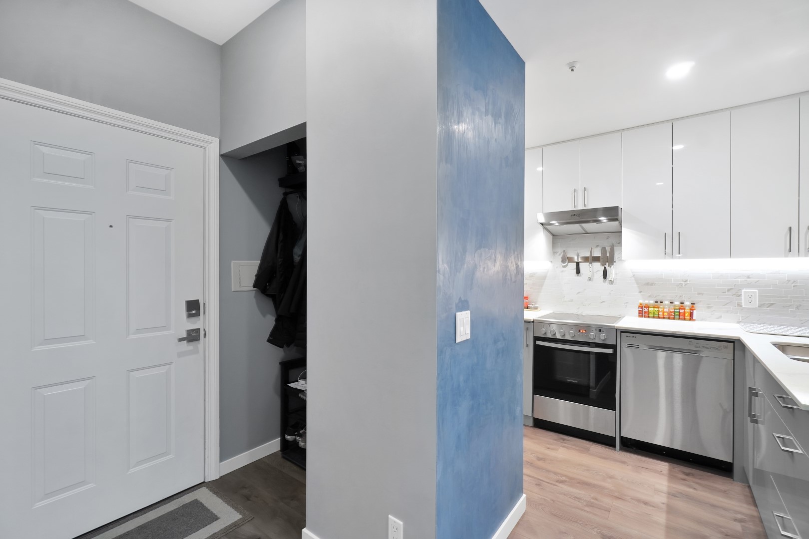 Don't miss your chance to own a beautiful fully renovated 1 bedroom plus den home at the Legend at Raven Woods. One of a kind designer contemporary style unit features excellent open floor plan with lots of natural light, 9' ceilings and large rooms, stunning kitchen with custom made cabinets, quartz countertops, s/s appliances and lots of storage space, premium quality laminate floors through out, gas fireplace, luxury bathroom, spacious solarium. Outstanding location: short walk to Parkgate Village, community centre, library, transit, schools, Cates Park and so many other amenities. Roche Point Park and Seymour Golf Club are right at the door step. 2 pets and rentals are allowed. 1 parking and 1 storage locker.